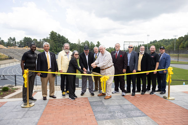 App State honors John Weaver ’71 ’82 — longtime head coach of Appalachian State University men’s and women’s track and field programs — with a plaza dedicated in his name, recognizing his contributions to both App State and the High Country community. The plaza is located at the entrance of App State’s Randy Marion Track and Field Facility — part of the Appalachian 105 Sports Complex in Boone.