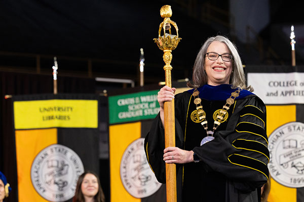 Dr. Sheri Everts takes office as App State’s eighth leader and first woman chancellor. She was formally installed to the role in April 2015. Everts stepped down from the chancellor role in April 2024, after a decade of leadership at App State.