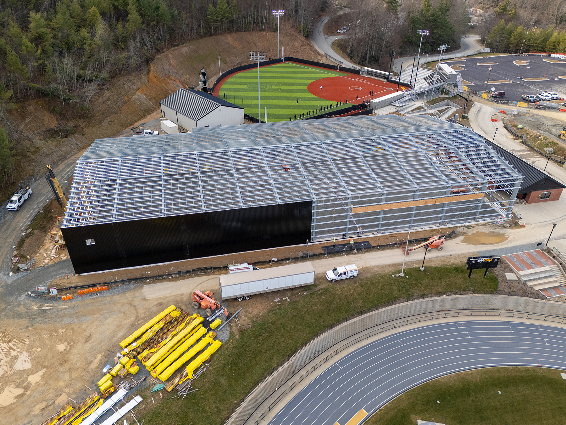 The structural steel for the pre-engineered metal building has been installed, and workers will soon begin applying the facility’s metal wall panels and roof. McMillan Pazdan Smith Architecture, based in Charlotte, North Carolina, designed the courts, and David E. Looper and Co., located in Hickory, North Carolina, serves as the contractor for the Phase 3 development.
