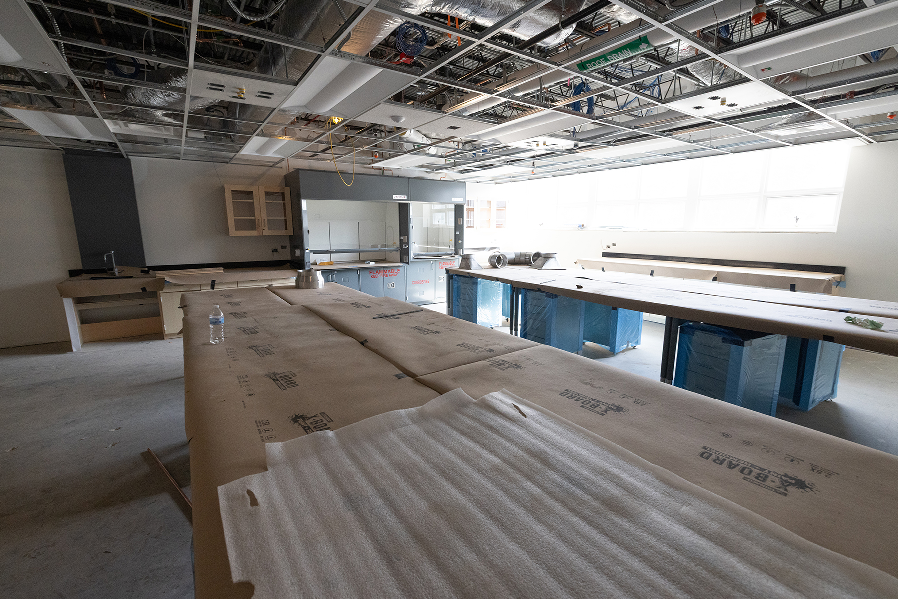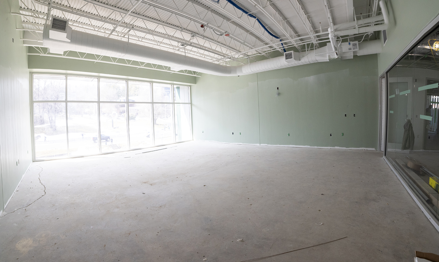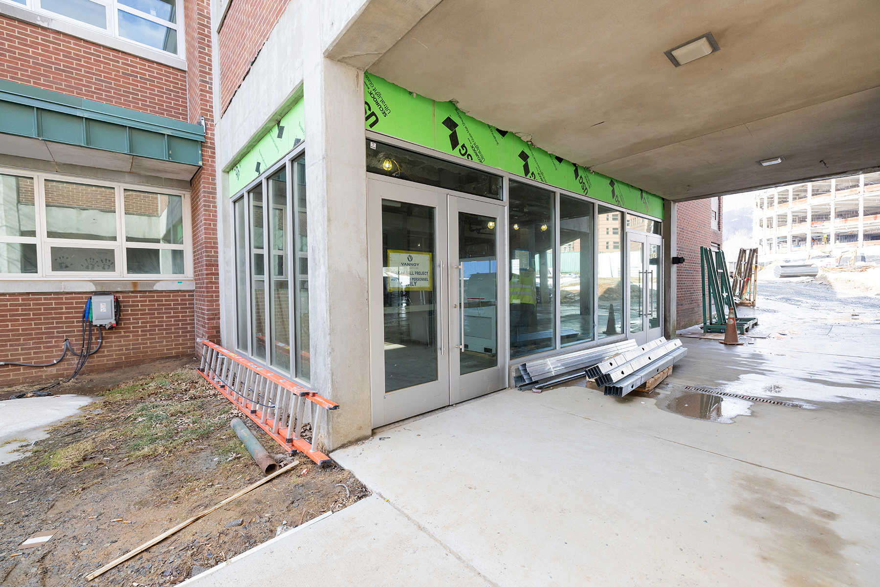 Ongoing construction work for the project includes plumbing, piping and duct work and electrical rough-ins, along with interior painting, drywall application and doors installation. Additionally, various sidewalks and curbing have been poured. Edwin Duncan Hall’s main entrance has been shifted to the northwest end of the building, near the adjacent Peacock Parking Lot.
